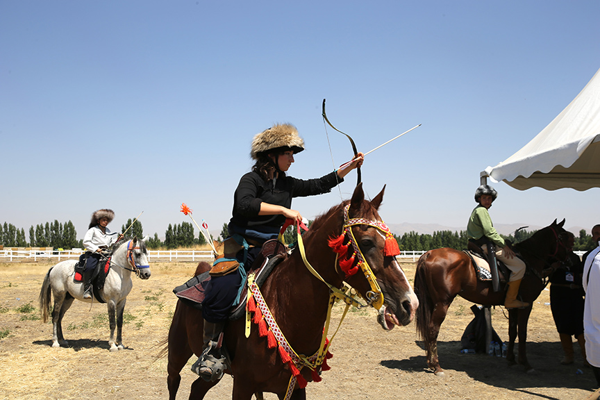 Ustalıkla kullandıkları yaylarıyla hipodromdaki parkurda "Ya Hak" diyerek belirlenen hedeflere ok atan "kadın süvariler", Selçuklu ordusunun 1071'de tarihe yön verdiği ata toprağı Malazgirt'te Selçuklu ruhunu yaşatmanın gururunu yaşadı.