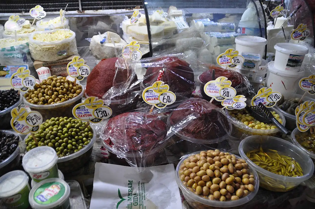 Pazarda taze sebze ve meyvelerin yanı sıra, sahur sofralarını şenlendirecek kahvaltılık, peynir, zeytin, sos, reçel, kaymak, tereyağı, yoğurt, iftariyelik envai çeşit hurma, Konya’nın meşhur küflü peynir ve kuru bamyası, tarhana, kadayıf, güllaç, şekerpare, çayın eşlikçisi kuru yemiş, yumurta, et, tavuk, kuru baklagil ve tahin, pekmez gibi ürünlerin satışı yapılıyor.
