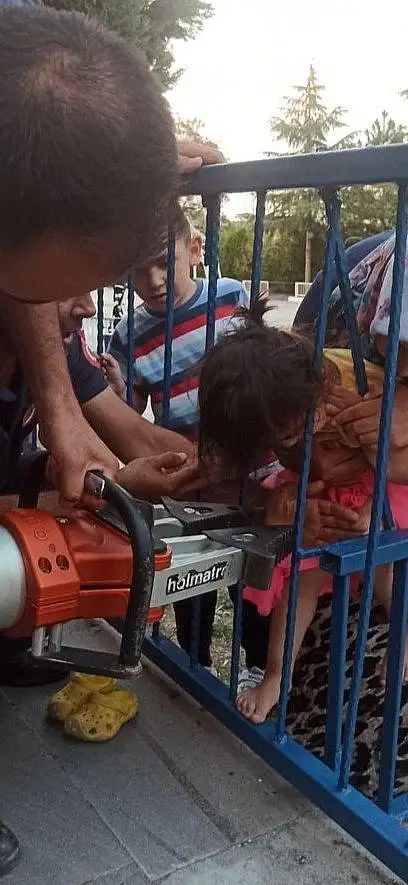 Kafası demir korkuluğa kafası sıkışan çocuğu itfaiye kurtardı