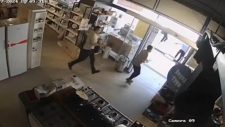 Deprem, kentteki iş yerlerinin güvenlik kameralarına yansıdı. Beyaz eşya satışı yapan iş yerinin güvenlik kamerasına yansıyan görüntülerde deprem anında bulunan insanların panik halde dışarıya kaçtığı anlar da yer aldı.