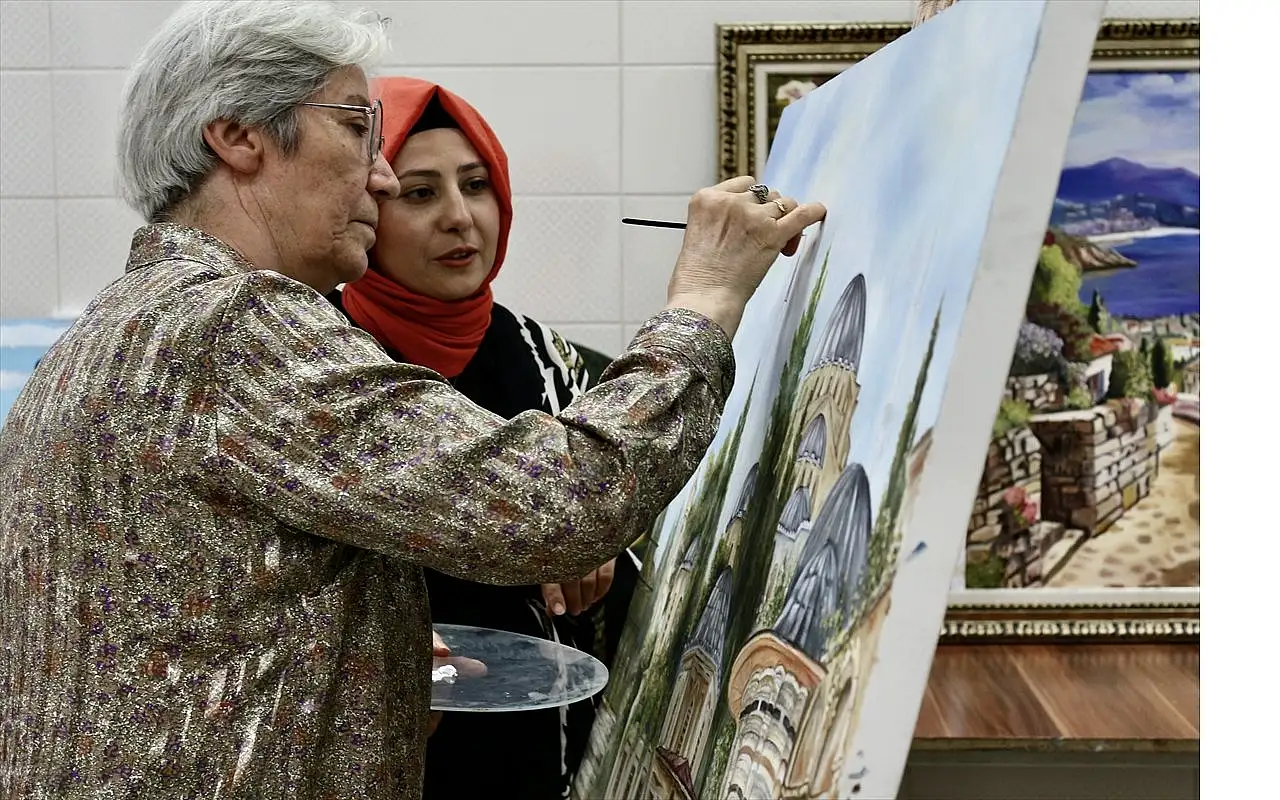 "Hocamın da desteğiyle gerçekten resim yapabiliyorum, çok da zevk alıyorum. Hastalığı unuttum, bu süreçte sürekli resim yaptım. Şu anda da hem anneme bakıyorum hem de çok sevdiğim resmi devam ettiriyorum. Başladığım zaman resmin içinde kayboluyorum. Renklerle oynamak çok hoşuma gidiyor, yani kendimi kaybediyorum. Son bir yıldır sağ elim titremeye başladı ama yine de yapıyorum. Tatil olunca 'Kurs ne zaman açılacak?' diye arıyorum. Yaşım epeyce var ama gücüm yettiğince kursa gelmeyi, resim yapmayı düşünüyorum. Resim tutkumu, KOMEK'in sergi salonunda 48 resimle açtığım ilk kişisel sergimle taçlandırdım."