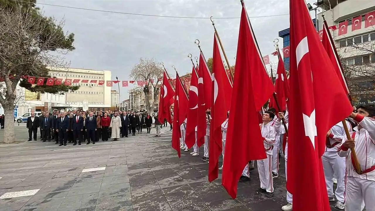 Sabahleyin öğretmenevi önünde bando eşliğinde yapılan kortej yürüyüşü İsmet Paşa Caddesi’nde bulunan Cumhuriyet Parkı’nda son buldu. Burada İl Milli Eğitim Müdürü Mehmet Çalışkan, Atatürk Anıtı’na çelenk bıraktı. Daha sonra saygı duruşunda bulunulması ve İstiklal Marşı’nın okunmasının ardından tören sona erdi.