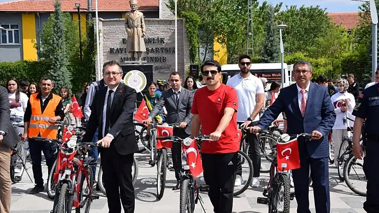 Öğrencilerle birlikte bisiklete binerek ilçedeki mahallelerde pedal çeviren Kaymakam Şenol Öztürk, "Gençliğimize değer ve önem veriyoruz. Özellikle 19 Mayıs için birçok program ve etkinlik oluşturduk. Şimdiden bayramımızı kutluyoruz." dedi.