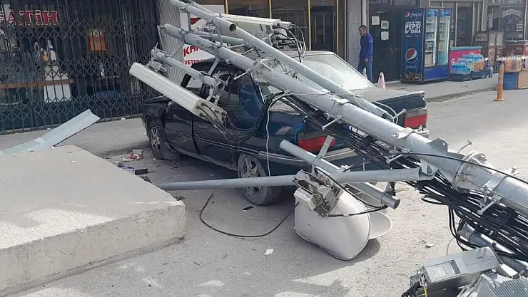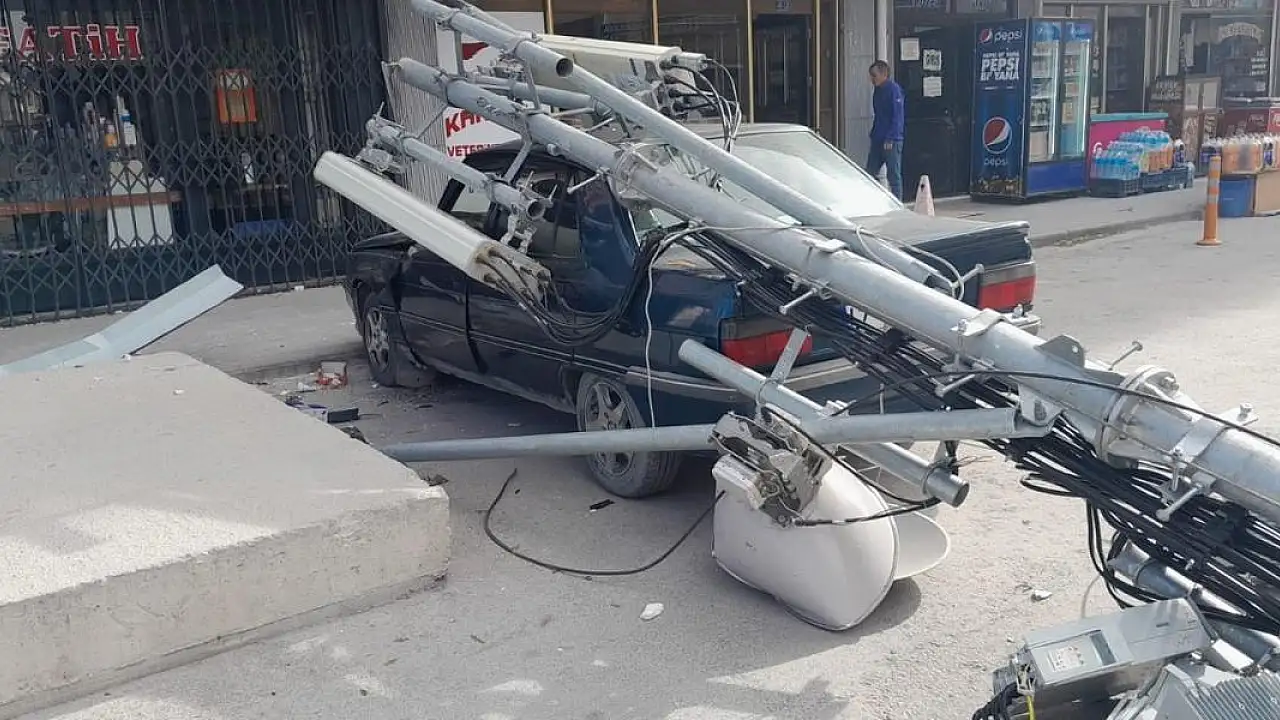 Olay, Okullar Caddesinde bulunan Belediye İş hanı önünde meydana geldi. Edinilen bilgiye göre, bir vatandaş Belediye İş hanının önüne otomobilini park etti. Rüzgarın şiddetini artırdığı sırada yerinden kopan yaklaşık 7 metrelik baz istasyonu direği kabloları kopartarak büyük bir gürültü ile otomobilin üzerine düştü. Otomobilin çevresinde bulunanlar kaçarken, otomobilin içinde ve çevresinde kimsenin olmaması olayın boyutlarının büyümesini önledi. Direğin düşme anı bir iş yerinin güvenlik kamerasına yansıdı. Görüntülerde iş yerinin önünde bulunanların kaçması direğin düşmesi yer alıyor. Olayın bildirilmesi üzerine adrese polis ekibi sevk edildi. Polis ekibi şerit çekerek güvenlik tedbiri aldı.