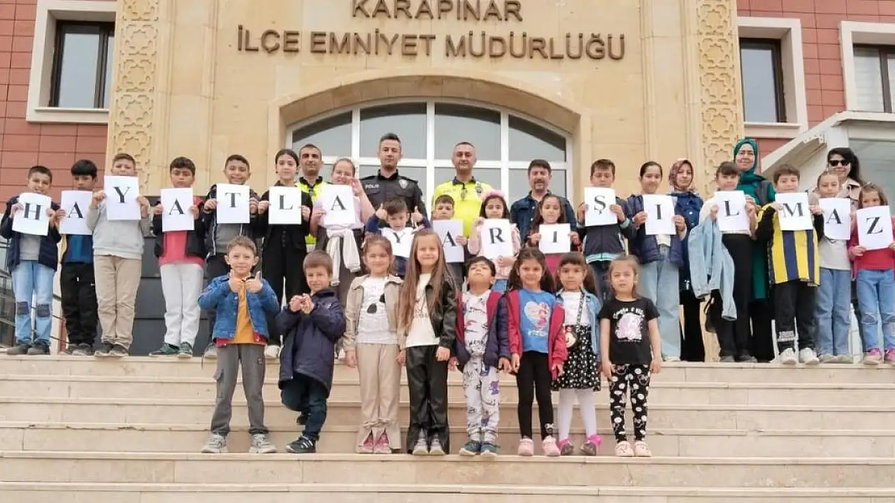 Karapınar'da 4-10 Mayıs Trafik Haftası etkinlikleri çerçevesinde ilkokul öğrencileri İlçe Emniyet Müdürlüğünü ziyaret etti. Emniyet Müdürü Salih Erdem ve trafik komiseri İlker Zorlu öğrencilere bilgiler verdi. Ziyarette, öğrencilere trafik kurallarına uymaları ve uymayanları uyarmaları gerektiği belirtilerek, trafiğin, sürücüler, araçlar ve yayalardan oluştuğu, trafik kurallarına uymanın önemi anlatıldı.