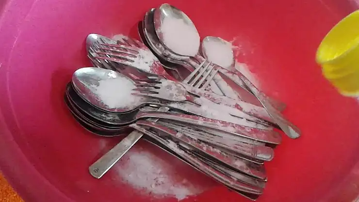 karbonat ve limon suyu karıştırarak çatal bıçaklarınızı bu karışımla ovabilirsiniz. Bu doğal temizlik yöntemiyle çatal bıçaklarınızı hem temizleyebilir hem de parlatabilirsiniz.