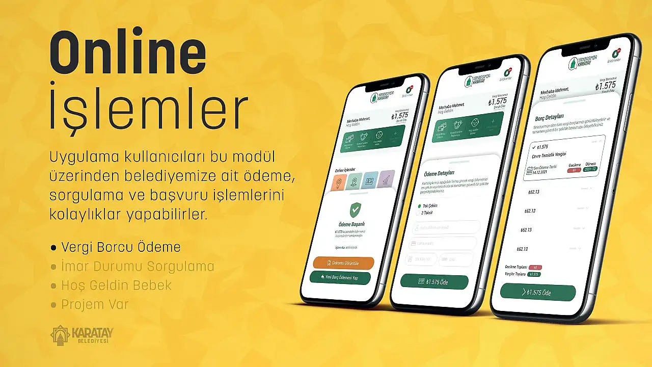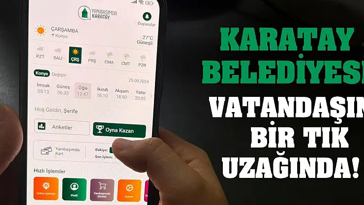 Öte yandan, geçtiğimiz yıl itibariyle yayında olan “Yanıbaşımda Karatay” akıllı mobil uygulaması, vatandaşa birçok kolaylık sunuyor. Uygulamanın “Online İşlemler” bölümünden belediyeye yapılabilen vergi borcu ödemeleri ve imar durumu sorgulaması yapılabiliyor. Yine ‘Online İşlemler' sekmesi altında bulunan “Projem Var”a tıklayan vatandaşlar, Karatay ile ilgili her türlü fikri veya projesini yükleyebiliyor. Karatay Belediyesi'nin sağlıktan spora, eğitimden ulaşıma, sosyal ve kültürden daha birçok başlıkta bugüne kadar hayata geçirdiği yatırım ve hizmetlerin yazılı ile görsel detaylarına da uygulama üzerinden ulaşılabiliyor. Karatay'ın tarihçesi, turistik yerleri, müzeleri, ören yerleri ve Karatay'ın tüm güzelliklerinin de keşfedilebileceği uygulamanın “Karatay TV” ve “Duyuru ile İlanlar” bölümünden ise belediyenin birçok konuda kamuoyuna duyurduğu gelişmelerden de anında haberdar olunabiliyor.