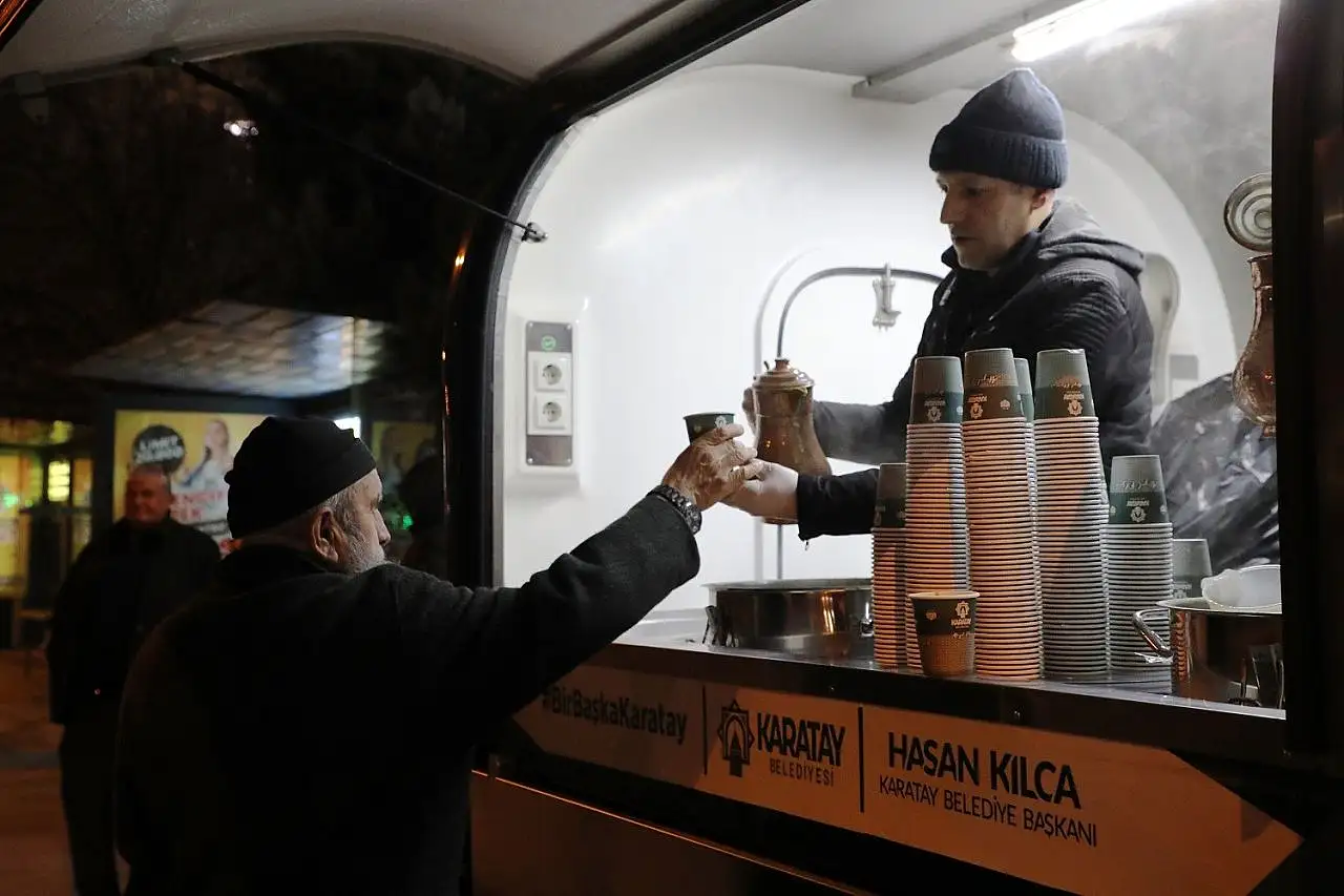 Karatay Belediyesi, soğuk havalarda mobil ikram araçlarıyla sıcak çorba ikram etmeye devam ediyor. Sabahın erken saatlerinde ilçenin işlek noktalarındaki çorba ikramı, işe, hastaneye veya okula gitmek üzere yola çıkan Konyalıların içini ısıtıyor. İlçenin işlek noktalarına yerleştirilen mobil ikram araçları, özellikle vatandaşların yoğun olduğu otobüs durakları, meydanlar ve çarşı bölgelerinde hizmet veriyor. Sıcak çorba ikramı, hem zamandan tasarruf etmek isteyene pratik bir çözüm sunuyor hem de soğuk havada iç ısıtan bir ikram oluyor.
