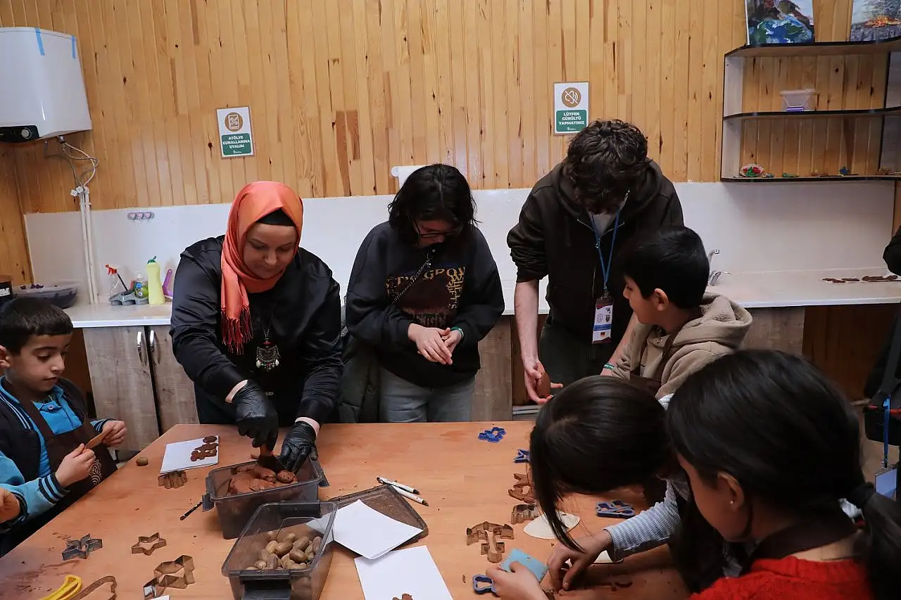 Etkinliğe katılan öğrenciler, Tabiat Mektebi'nin ahşap, mutfak ve kil atölyelerinde uygulamalı etkinliklere katıldı.