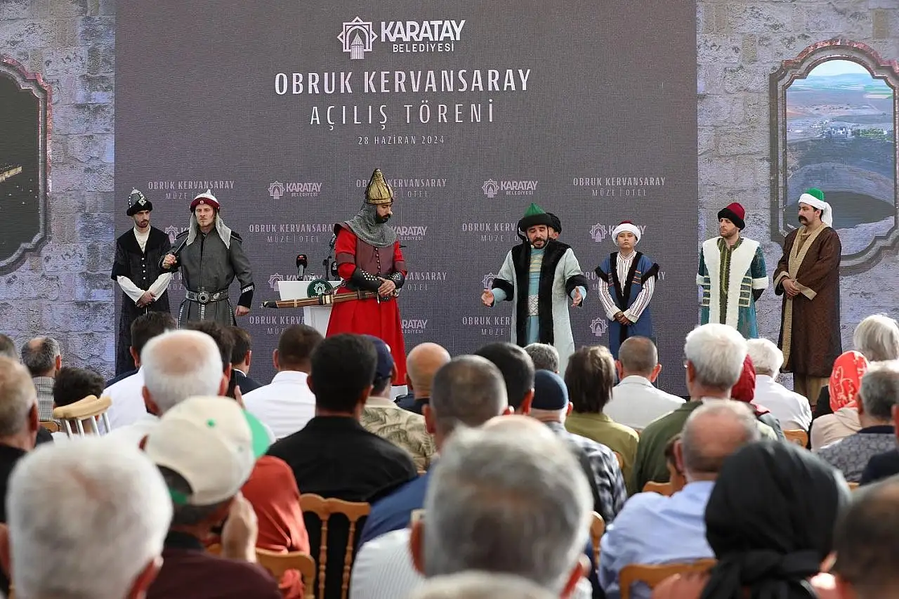 Kültürel varlıkları hem turizme kazandırmak hem de gelecek nesillere ulaştırmak amacıyla Karatay Belediyesi birçok proje yürütüyor. Bu kapsamda geçmişin izleri ile konaklama imkanı sunan 800 yıllık Obruk Kervansaray Müze Otel, 4 yıl süren restorasyon ve çevre düzenleme çalışmalarının ardından resmi törenle hizmete açıldı. Obruk Kervansaray Müze Otel’in açılış konuşmalarından önce katılımcılar, tiyatro gösterisi ile geçmişe götürüldü.