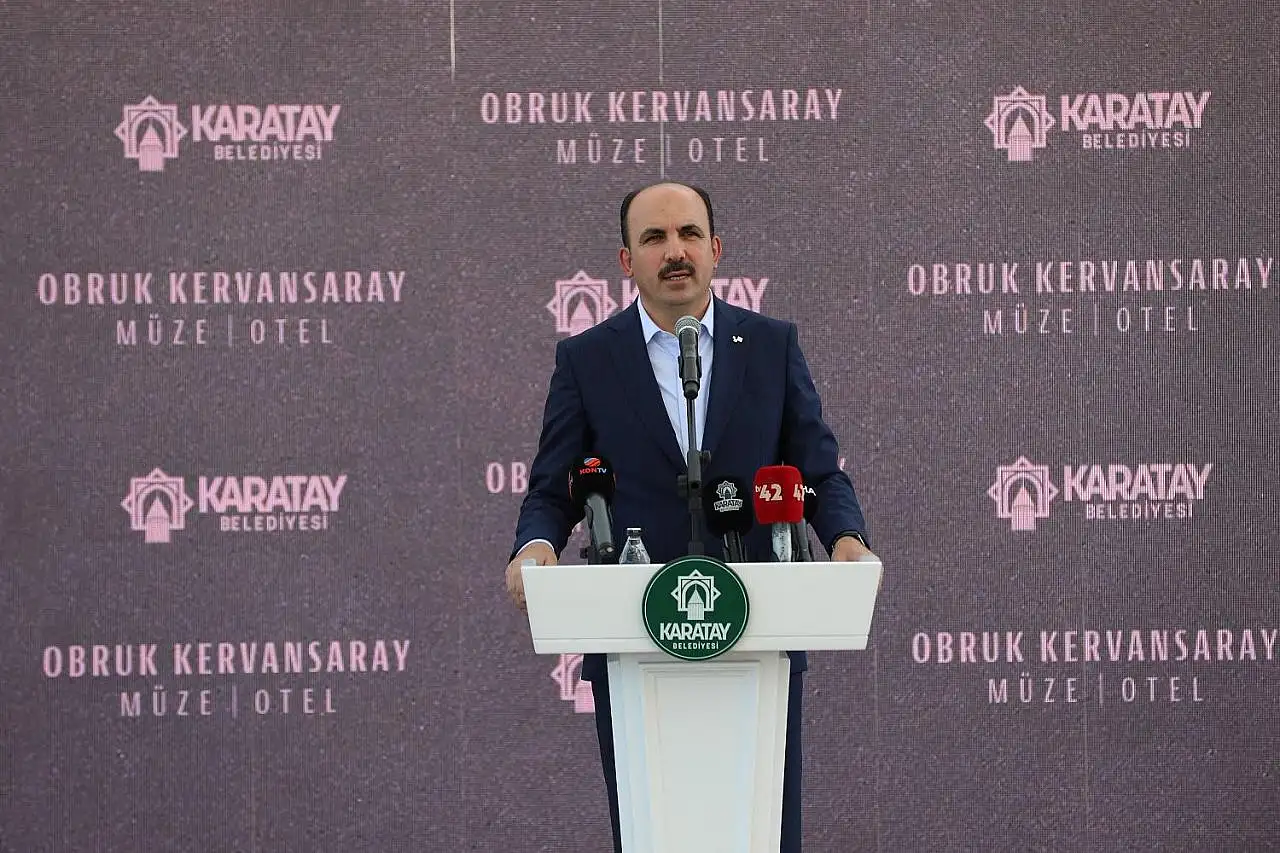 Başkan Uğur İbrahim Altay konuşmasında şu açıklamalara yer verdi; “Bugün Konya tarihi açısından çok önemli bir gün. Konya’nın başkent oluşunun 927. yılındayız. Bu önemli günde böyle güzel bir eserin açılışında bulunmak hepimiz için çok anlamlı. Ecdadımız bize o kadar güzel bir şehir bırakmış ki; ovasından dağına kadar nereye gözümüzü çevirsek Selçuklu‘nun önemli eserlerini görme imkanımız var. Maalesef bunların bir kısmının bugün gün yüzüne çıkarılması ya da tahribattan kurtarması mümkün olmamış ama bugün yapılan bu örnek iş diğer eserler için önemli bir başlangıç olacak. Bu vesileyle Karatay Belediye Başkanımız Hasan Kılca ve ekibine teşekkür ediyorum. Cem Kınay Bey’in işletmesinde Türkiye örnek bir işi hep birlikte ortaya çıkarmış olacağız. Ecdada sorumluluğumuzu ne yapsak yerine getirmemiz mümkün değil ama bu tür restorasyonlarla ve Konya’nın Dar-ül Mülk vurgusuyla bunu yapma gayretindeyiz. Şehrimizde bu tür yapıların yeniden hayata kazandırılmasıyla, hem yeni turizm markaları oluşturulmakta hem de Konya modeli belediyecilik vizyonumuzla hizmetlerimize devam etmekteyiz. Bu konuda merkezde Karatay, Meram ve Selçuklu Belediyelerimizle birlikte “Turizm Master Planı” çerçevesinde Konya’nın turizminde en önemli şehirlerinden birisi olmak için çaba sarf ediyoruz.”