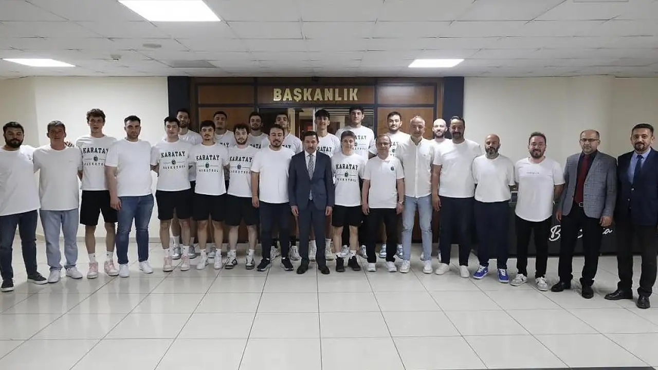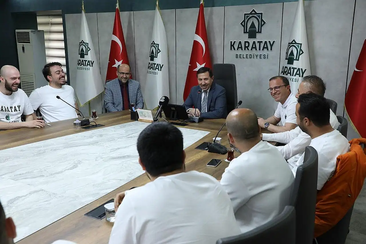Karatay Belediyespor Kulübü Basketbol A Takımı, Belediye Başkanı Hasan Kılca'yı ziyaret ederek başarılarını paylaştı.