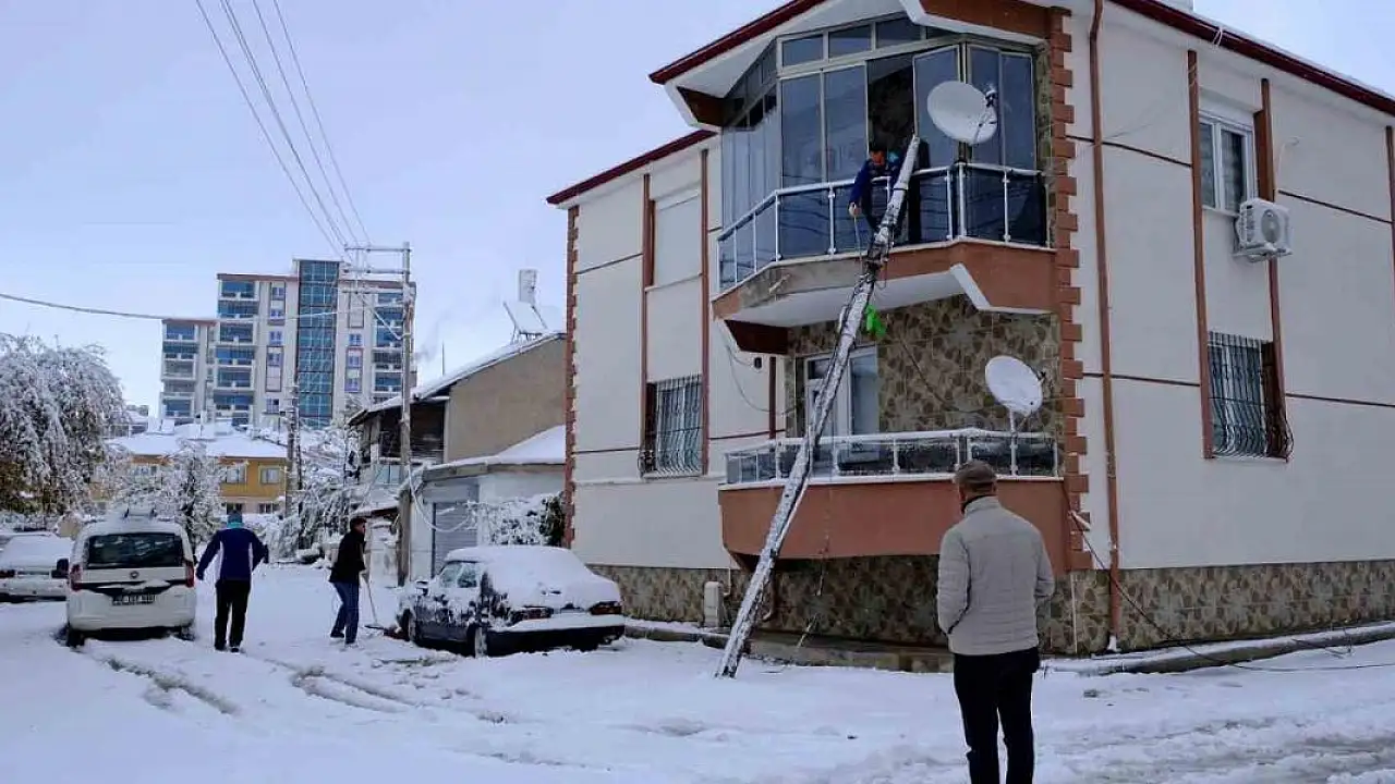 Karaman'da kar yağışı nedeniyle kayganlaşan yolda kontrolünü kaybeden otomobil telefon direklerine çarptı.Kökünden kırılan direklerden bir tanesi evin balkonuna dayanırken, diğeri yol üzerine devrildi.