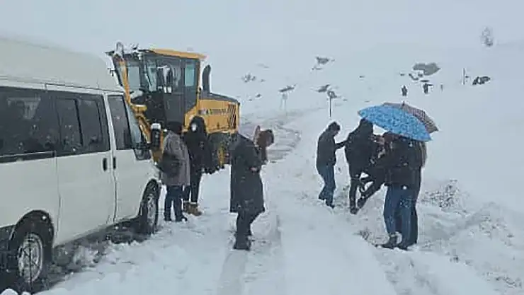 Karda mahsur kalan yolcuları belediye ekibi kurtardı
