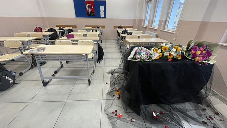 Törenin ardından, Akişli'nin sınıfında oturduğu sıraya fotoğrafı, anı defteri ve gül bırakıldı.