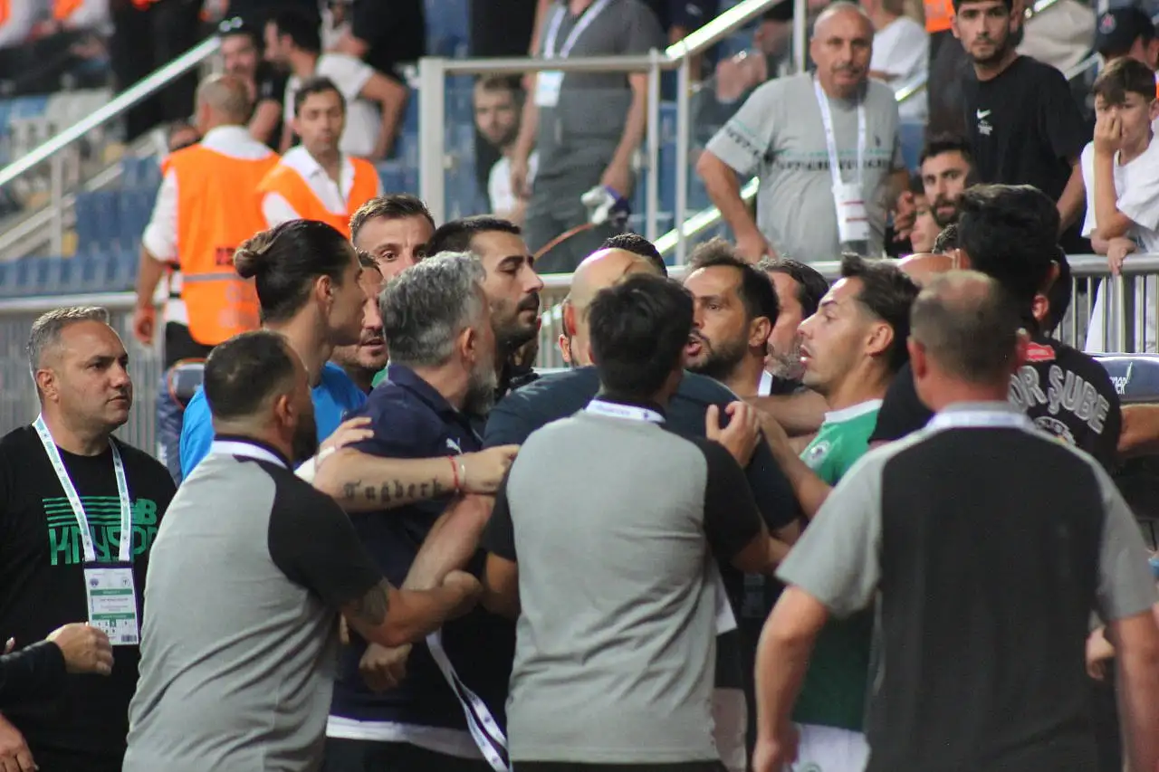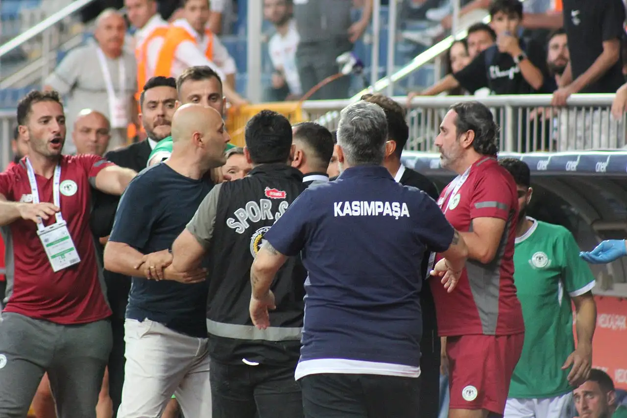 Kasımpaşa Teknik Direktörü Sami Uğurlu 42. dakikada itirazların ardından sarı kart görmüştü. İtirazlarına devam eden Uğurlu ikinci kartı da görerek oyundan atılmıştı. Sami Uğurlu gördüğü kırmızı kartın ardından saha alanından çıkarken Konyaspor yedek kulübesine yönelmiş ve Kulüp Doktoru Gökhan Özhan'nın üzerine yürümeye çalışmıştı. Konyaspor Yardımcı Antrenörü Ali Turan araya girdi ve buna izin vermemiş ortam bi anda gerilmişti.