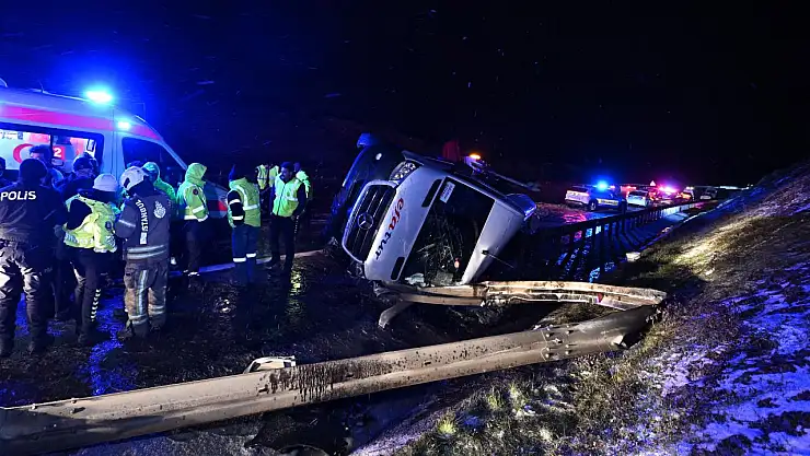 Kaygan yolda kontrolden çıkan minibüs devrildi! 11 yaralı var