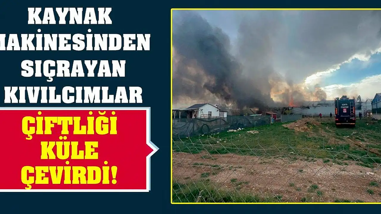 Meram ilçesi Karahüyük Mahallesi'nde bir tarım şirketine ait yumurta üretimi yapılan tavuk çiftliğinde saat 17.20 sıralarında tamir çalışması yapılırken, kaynak makinesinden sıçrayan kıvılcımlar yangına neden oldu.