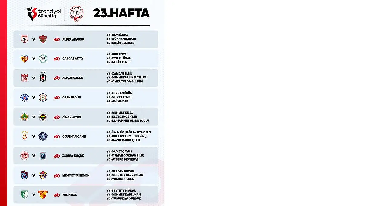 TFF, Süper Lig'de 23.haftada düdük çalacak hakemleri açıkladı.