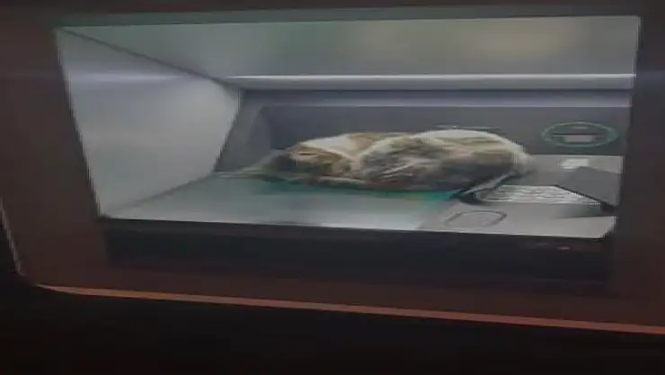 Kedi ATM'de uyudu, vatandaşlar rahatsız etmemek için başka ATM'ye yöneldi
