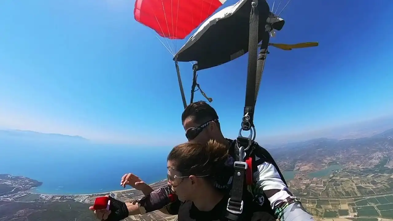 Türk Hava Kurumu (THK) Selçuk Havacılık Eğitim Merkezi Paraşüt Okul Müdürlüğü'nde eğitmenlik yapan Mehmet Karadaş, kız arkadaşı Aybike Aşkar'a evlenme teklifi için sürpriz hazırladı.Evlenme teklifini gökyüzünde yapmak isteyen Karadaş, Aşkar'la gerçekleşti