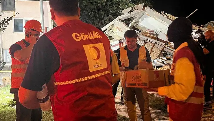 Kızılay 30 araç, uzman ekipleri ve gönüllüleriyle hem depremden etkilenen vatandaşlara hem de gece boyunca görev yapacak arama-kurtarma ve sağlık ekiplerine sıcak yemek, içecek ve temel gıda ikramı yaptı.Depremin hemen ardından sahaya ulaşan Türk Kızılay