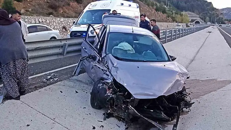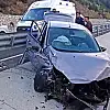 Kontrolden çıkan otomobil refüjdeki bariyerlere çarptı: 2 yaralı