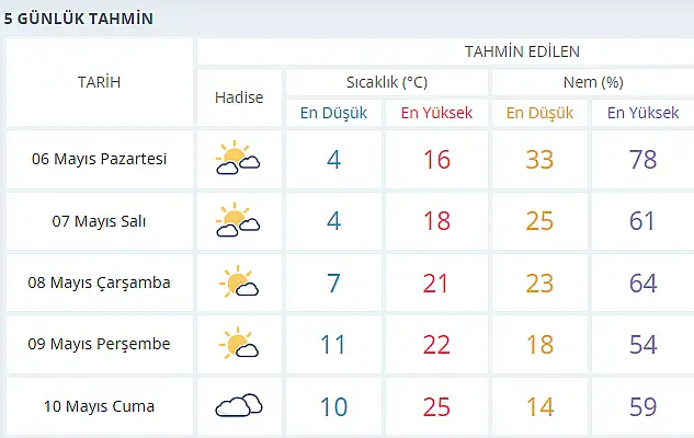 Önümüzdeki günlerde ise Konya ve ilçelerinde sıcaklıklar artacak. MGM’nin tahmin raporuna göre 5 günlük hava tahmininde sıcaklıklar 9 derece birden yükselecek.