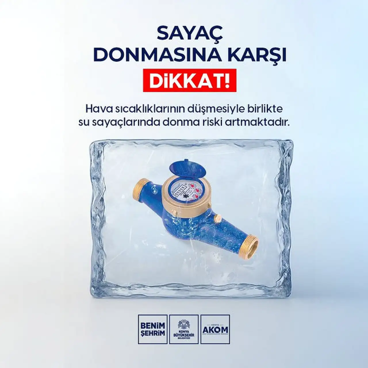 Konya genelinde hava sıcaklıklarının hissedilir derecede düşmesiyle birlikte Konya Büyükşehir Belediyesi Afet Koordinasyon Merkezi (AKOM), vatandaşları su sayaçlarında oluşabilecek donma riskine karşı uyardı.