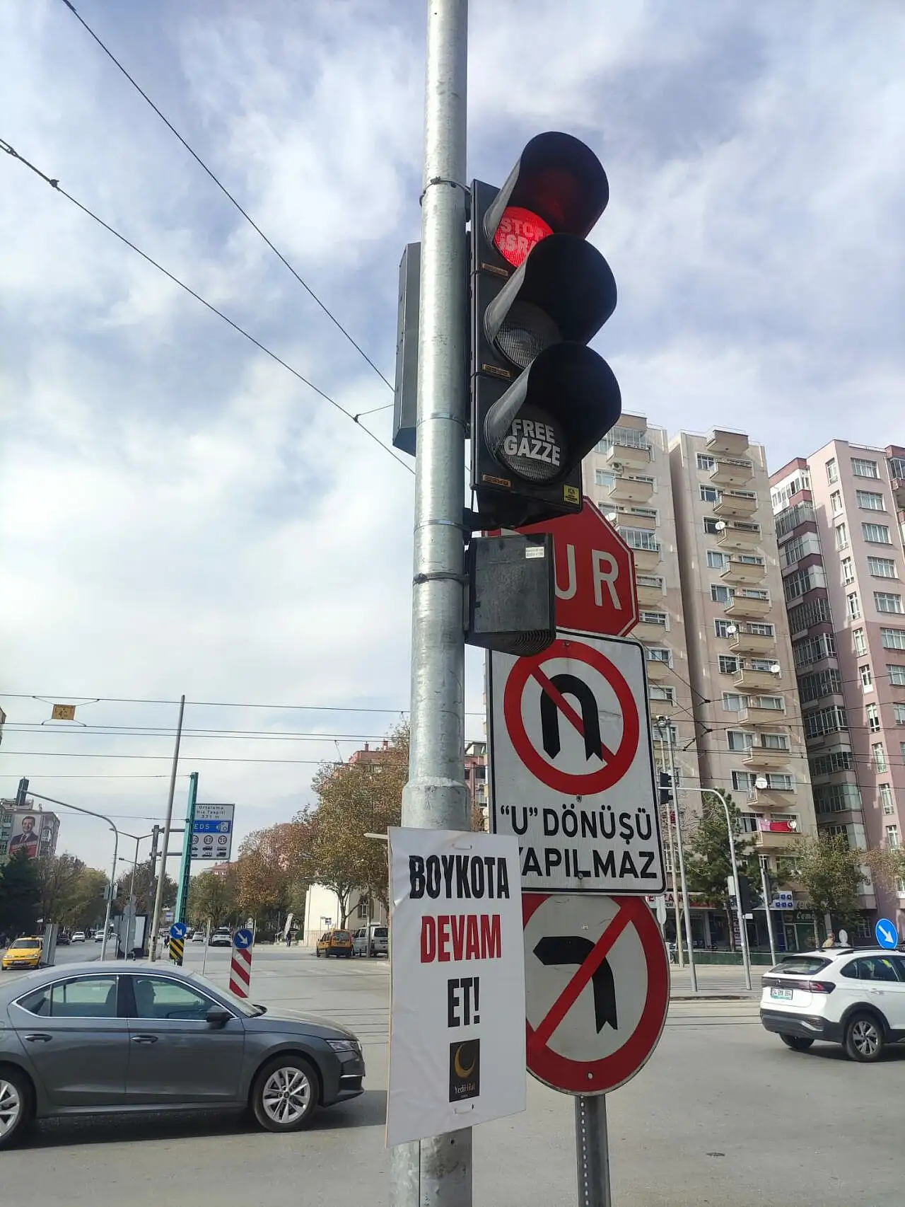 Kırmızı ışıkta dururken bir kez daha “Stop İsrail” diyen Konya, yeşil ışıkta “Free Gazze” çağrısıyla Filistin’in yanında durmayı sürdürüyor.
