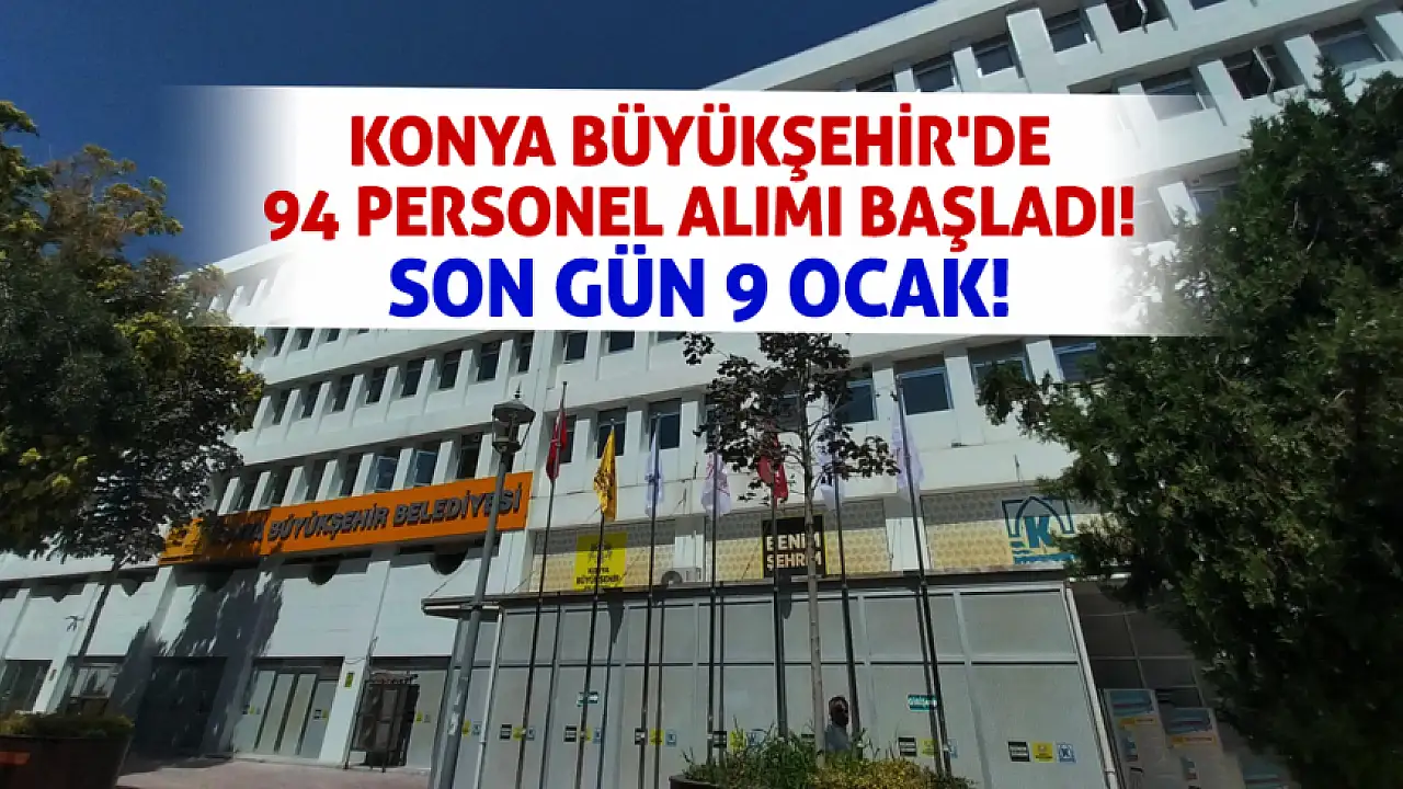 - Konya Büyükşehir'de 94 personel alımı başladı! Son gün 9 Ocak!