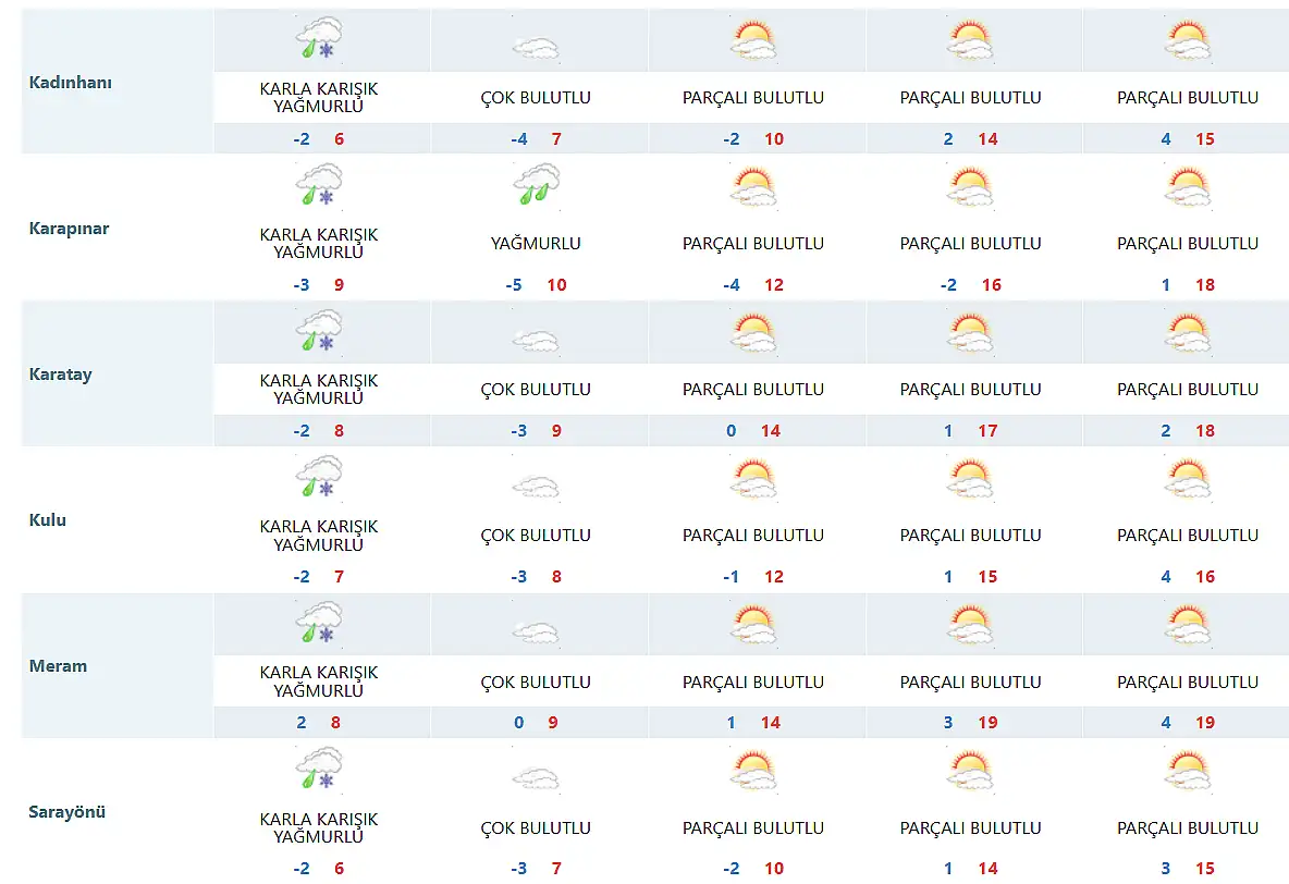 İŞTE KONYA VE İLÇELERİNDE HAVA DURUMU TAHMİNLERİ:
