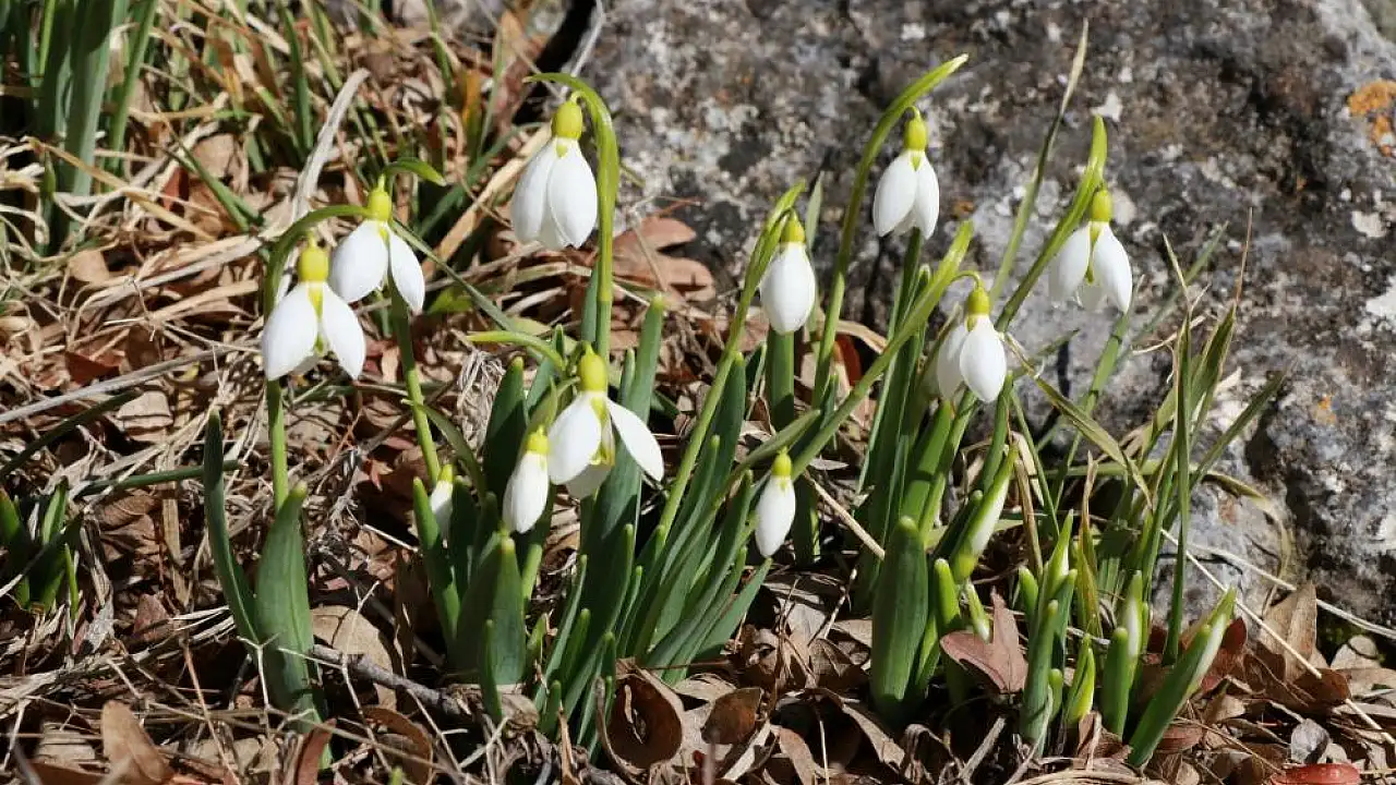 Konya'nın yüksek kesimlerinde havaların ısınmasıyla birlikte kardelenler çiçek açtı.