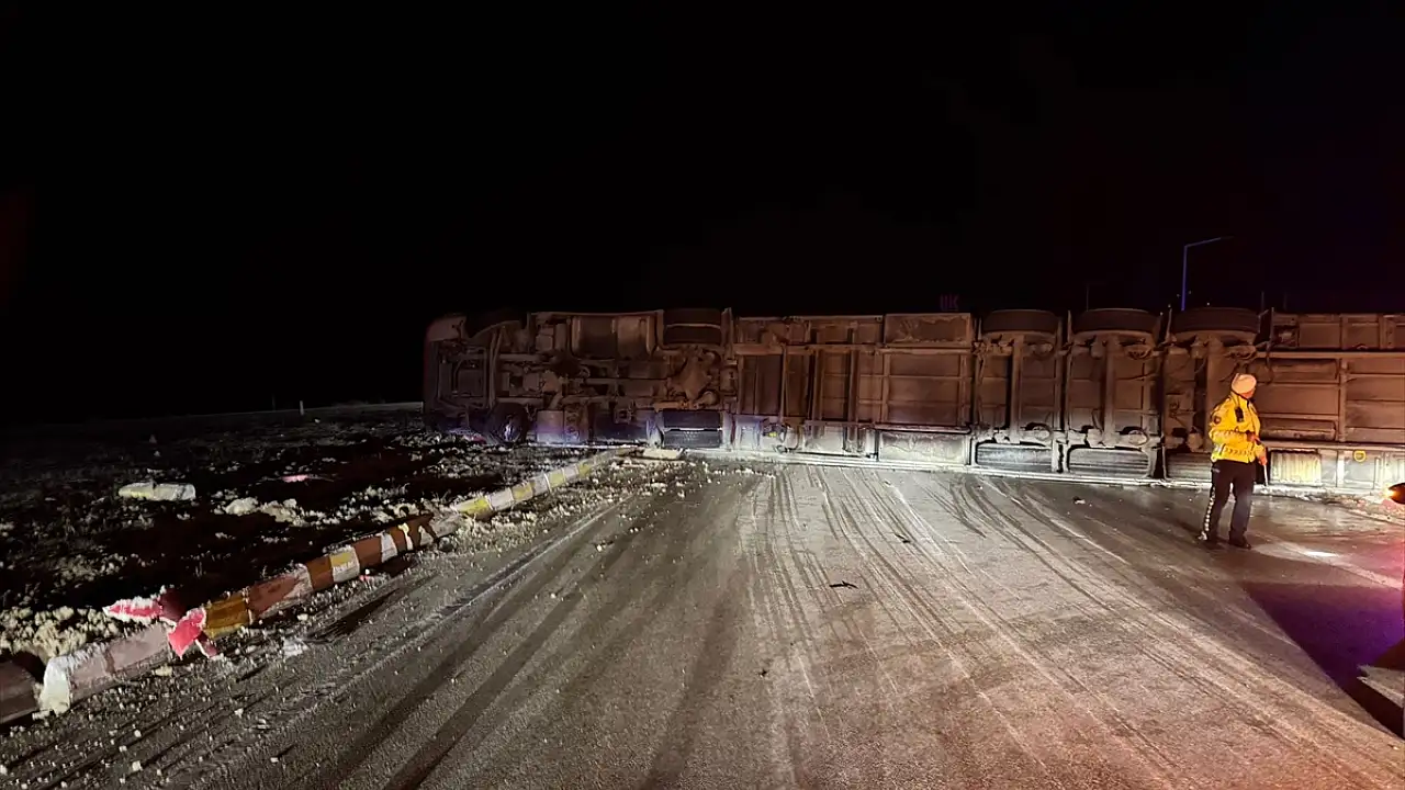 Ali Gülber (59) idaresindeki tır, Konya - Ankara kara yolunun 120. kilometresinde devrildi.
