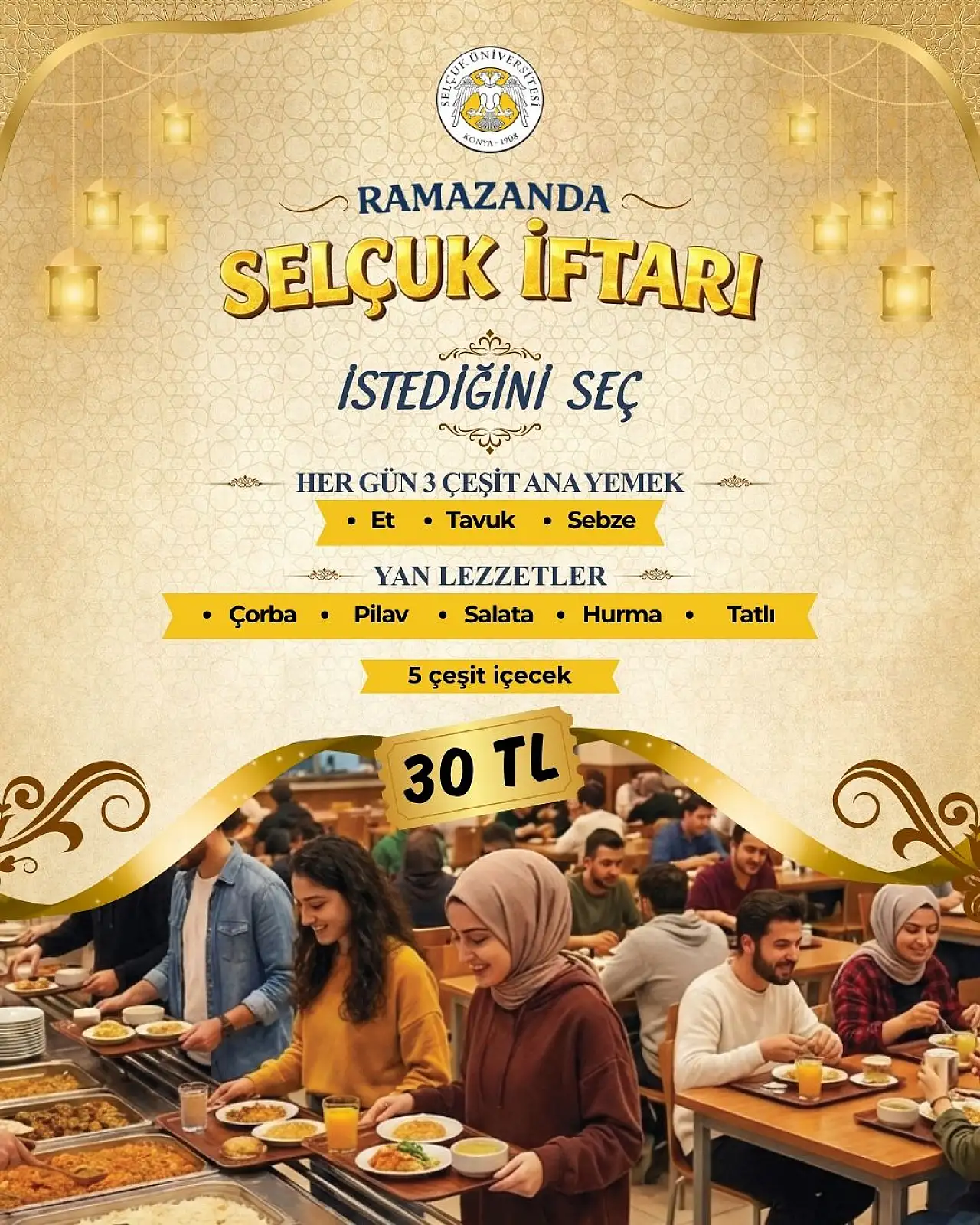 Selçuk Üniversitesi, Ramazan ayında öğrencileri 30 TL'lik zengin iftar menüsüyle buluşturacak!