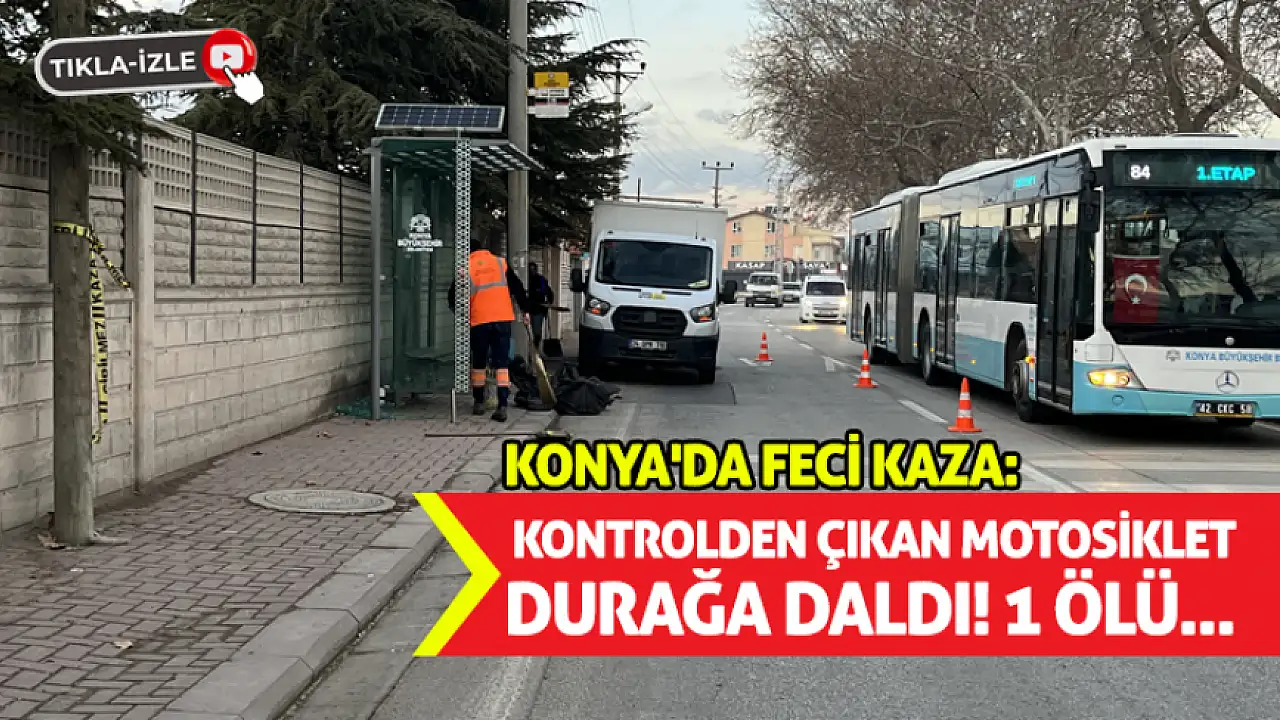 Konya Meram'da akşam saatlerinde meydana gelen feci kazada, kontrolünü kaybeden 17 yaşındaki motosiklet sürücüsü otobüs durağına çarptı. Hastaneye kaldırılan Mehmet Yağız Z., doktorların tüm müdahalelerine rağmen kurtarılamayarak hayatını kaybetti.