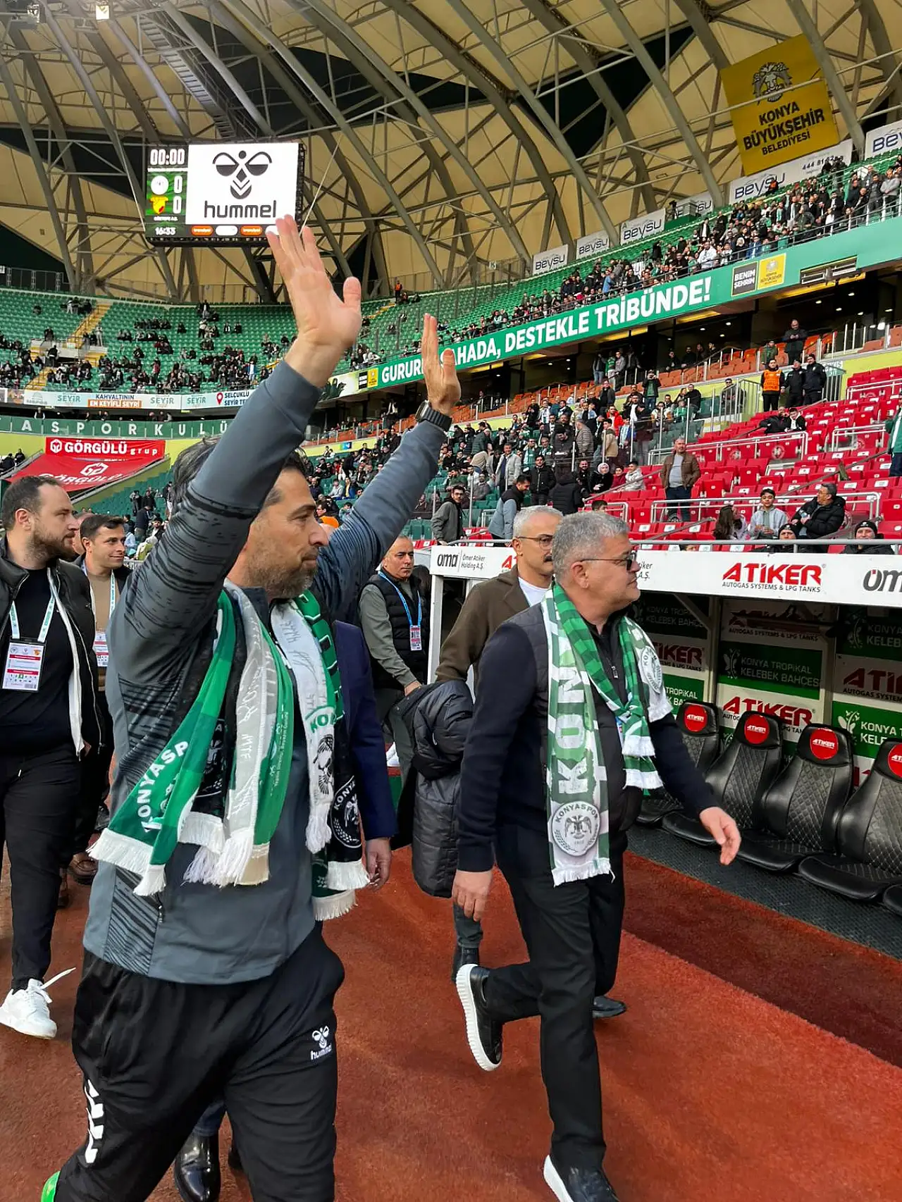 Maç öcesinde İlhan Palut, Konyaspor Başkanı Ömer Atiker ve diğer yöneticilerle tüm tiribünleri dolaştı. Dakikalarca dört tribünü tamamını dolaşan İlhan Palut'a büyük bir sevgi seli vardı. Taraftarlar tribünlerden atkıları Palut'a vermek için kendileri ile yarıştı. İlhan Palut, kendisine atılan tüm atkıları boynuna astı ve taraftarı selamladı.