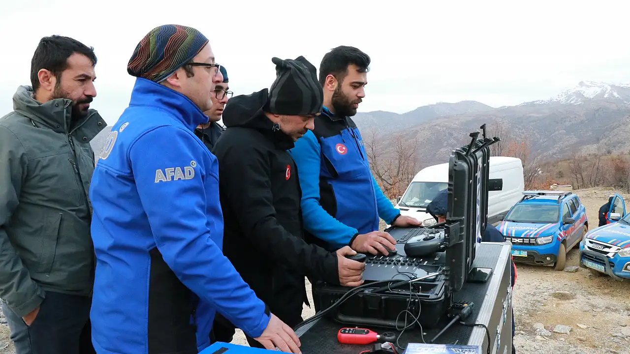 AFAD koordinasyonunda yürütülen çalışmalarda, Ankara'dan bölgeye gönderilen yapay zeka destekli 4 insansız hava aracı görev yapıyor. Dronlar, geniş alanları kısa sürede tarayarak arazi üzerindeki hareketlilikleri analiz ediyor.