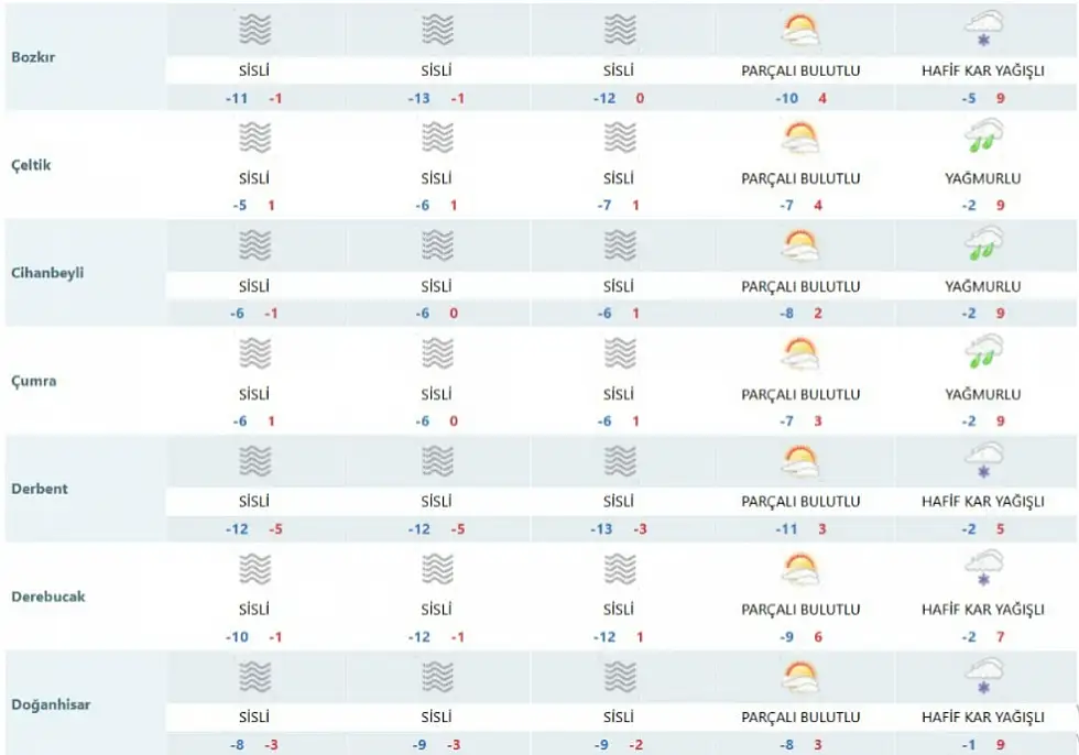 Konya genelinde önümüzdeki hafta soğuk ve sisli hava etkisini sürdürecek. Meteoroloji verilerine göre şehir merkezi ve ilçelerin büyük bölümünde haftanın ilk günlerinde yoğun sis beklenirken, gece sıcaklıkları sıfırın altında seyredecek