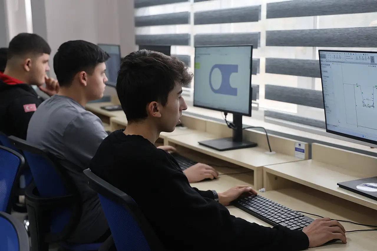 Makine Teknolojisi atölye şefi Ahmet Turan, "Burada temel bilgileri en azami şekilde öğrenmeye çalışıyor çocuklarımız. Laboratuvarda bilgisayar üzerinde tasarımlarını yapıp daha sonra uygulamalarını ardından CNC tezgahımızda üretim yapıyoruz. Bu şekilde üretime katkı sağlıyorlar" diye konuştu.