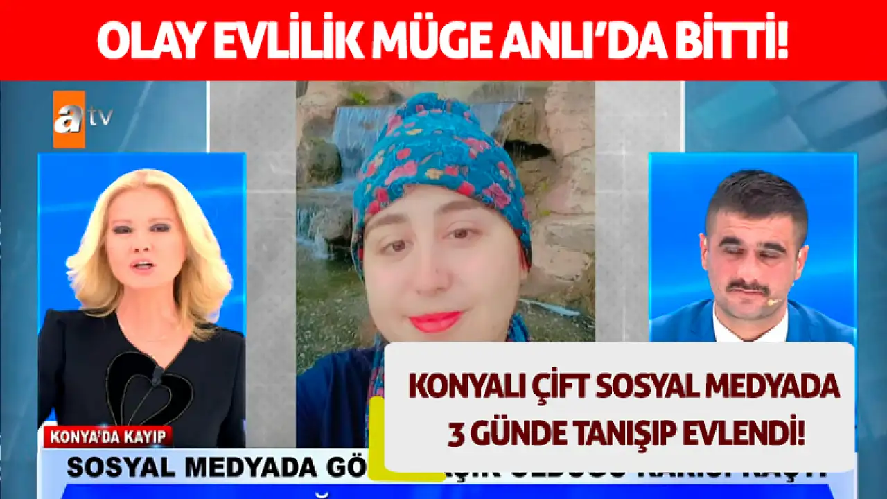 - Konya'da sosyal medyada başlayan evlilik Müge Anlı'da bitti!