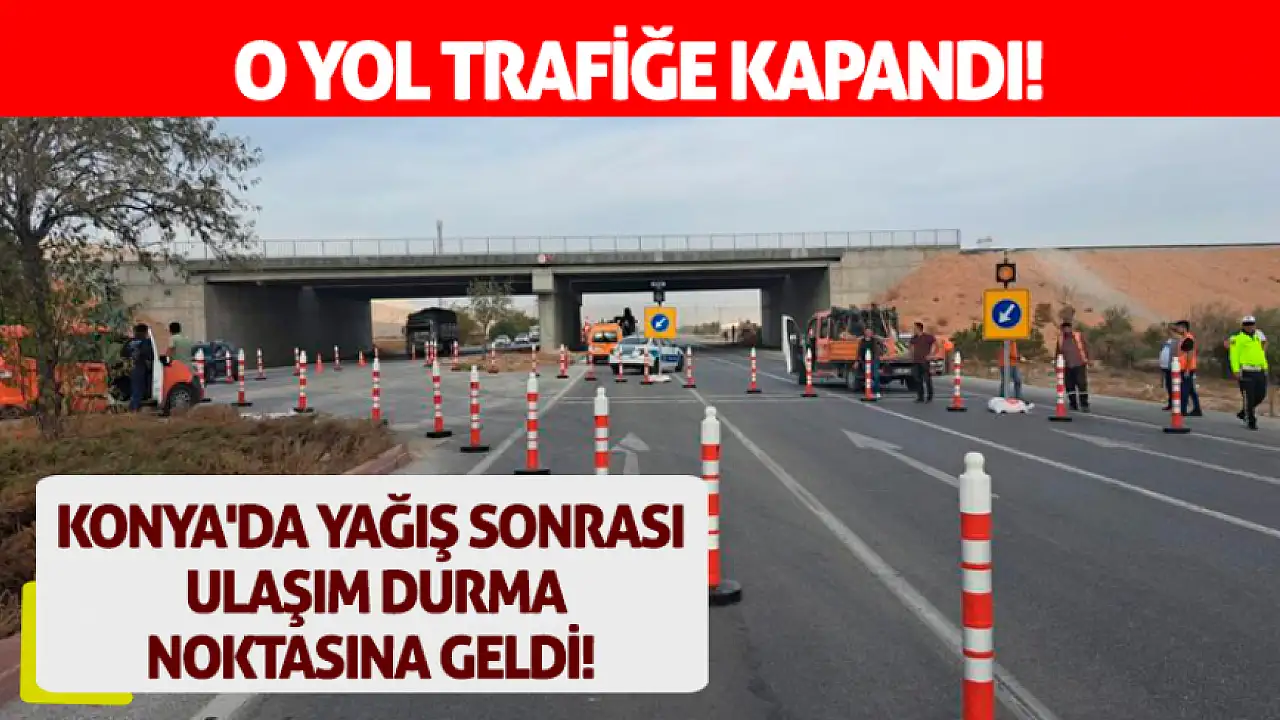 Konya'da olumsuz hava koşulları ulaşımı vurdu. AKOM, su birikintileri nedeniyle Yeni Konya–Antalya kara yolu Demirkapı çıkışının geçici olarak trafiğe kapatıldığını duyurdu. Sürücülere alternatif güzergâh uyarısı yapıldı.