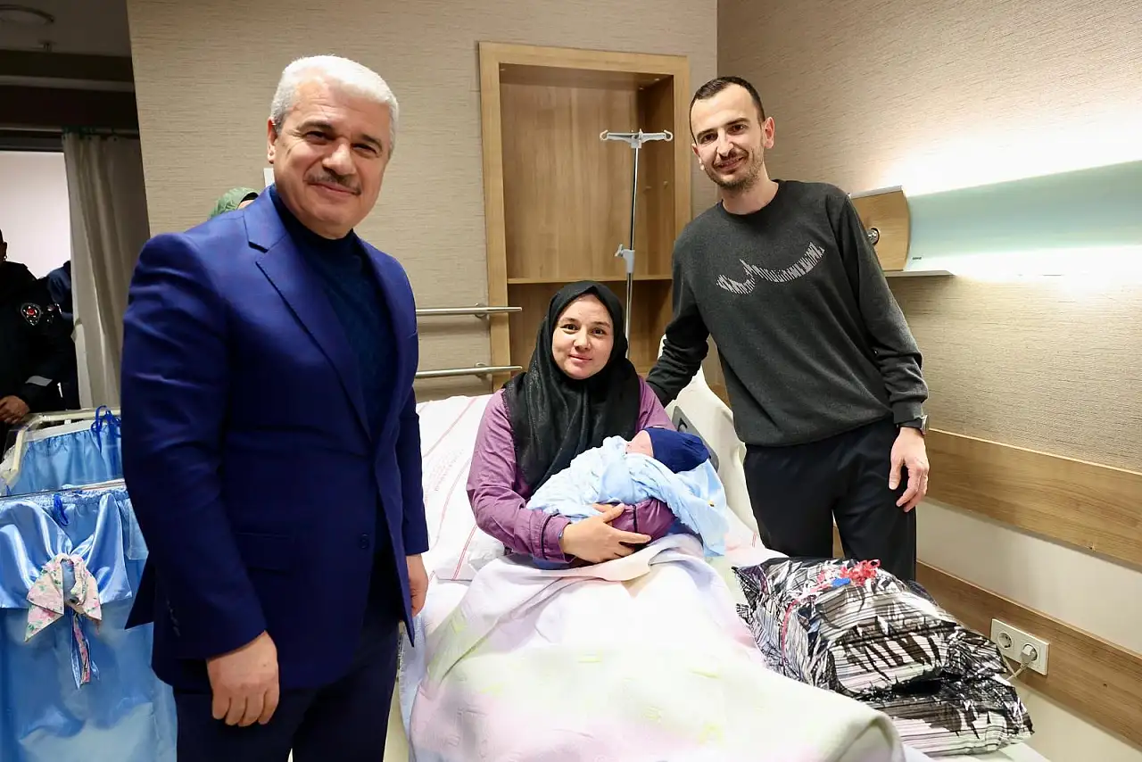 Konya Valisi İbrahim Akın, İl Jandarma Komutanı Tümgeneral Cemil Lütfi Özkul, İl Emniyet Müdürü Maksut Yüksek ve İl Sağlık Müdürü Doç. Dr. Yusuf Yavuz ile birlikte yeni yılın ilk dakikalarında dünyaya gelen Alparslan bebeği ve annesini ziyaret ederek, anne ve bebeğe hediye verdi. Akın, Alparslan bebeğe ve ailesine sağlık dileyerek, Sağlık Müdürlüğüne, hastane yönetimine, hekimlere teşekkür etti, 2026 yılının huzur ve istikrar yılı olmasını temenni etti.