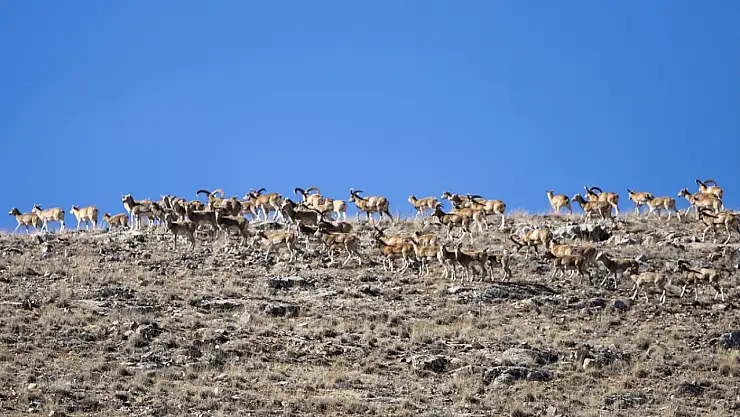 Heybetli yapılarıyla dikkati çeken, 1000 ve 1700 rakımlı dağ silsilesinin yer aldığı bozkırlarda gruplar halinde yaşayan Anadolu yaban koyunları, varlıklarını 60 bin hektarlık yaşam alanlarında sürdürüyor.