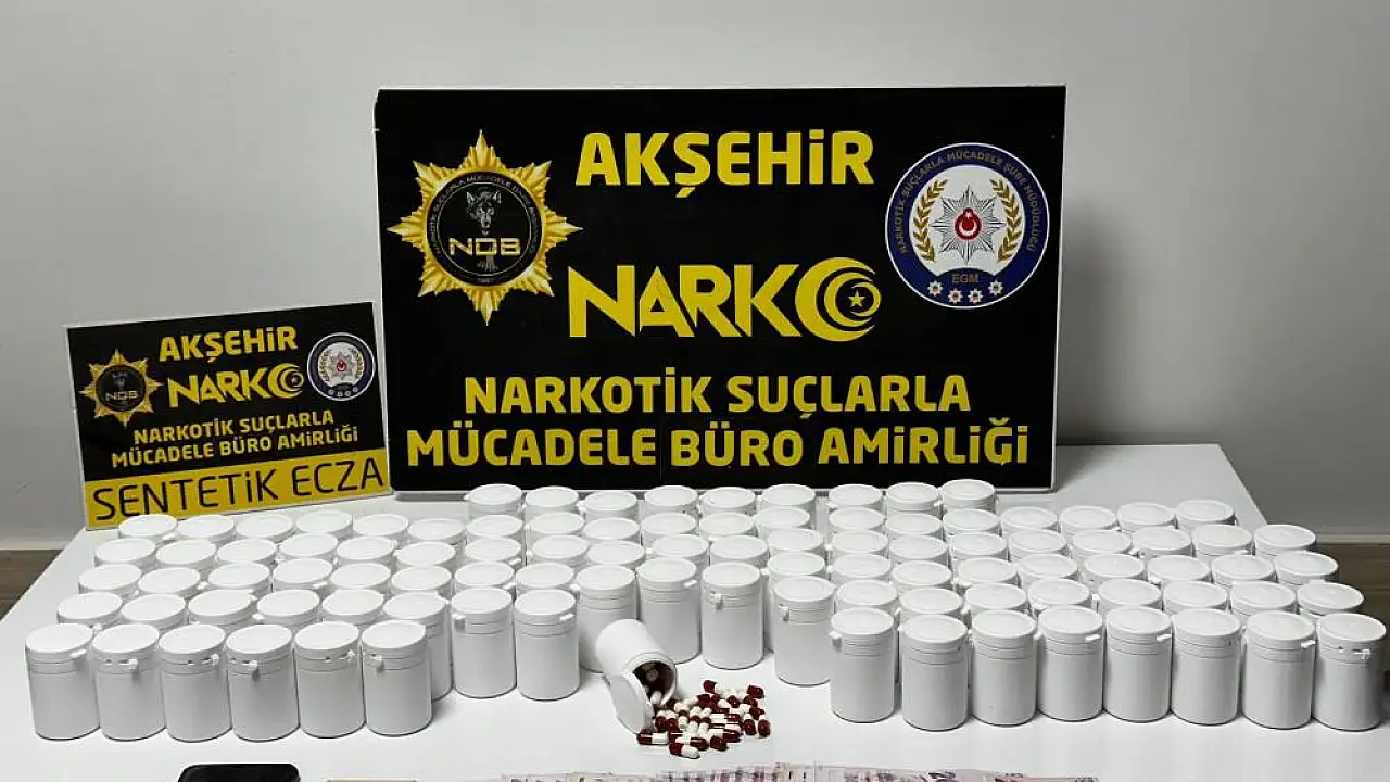 Konya’nın Akşehir ilçesinde uyuşturucuya geçit verilmedi. İlçe Emniyet Müdürlüğü Narkotik Suçlarla Mücadele Büro Amirliği ekiplerince yürütülen çalışma kapsamında takibe alınan 1 şüpheli yakalanırken, yapılan aramalarda binlerce uyuşturucu hap ele geçirildi.