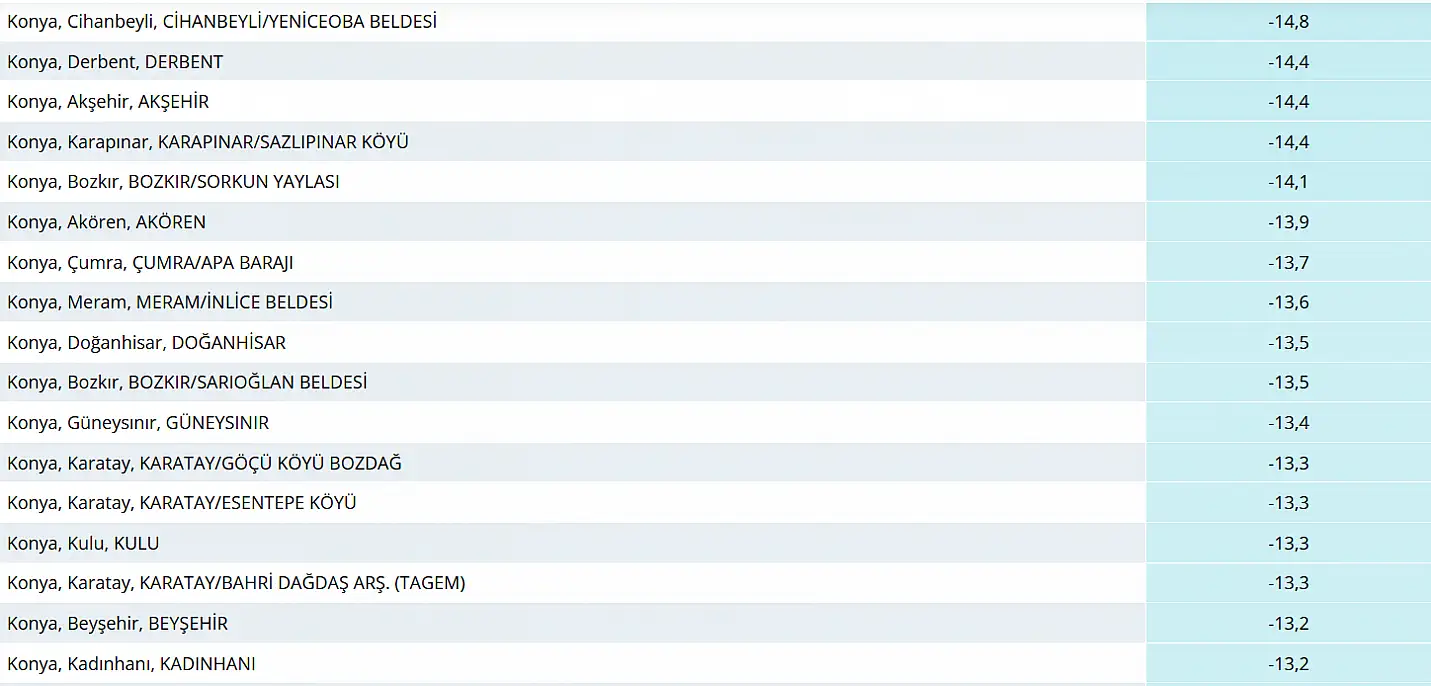 Konya ve ilçelerinde son günlerde devam eden kar yağışı sonrasında Konya'da dün gece termometreler neredeyse -20 derecelere yaklaştı. Peki, en soğuk ilçe neresi? İşte detaylar...