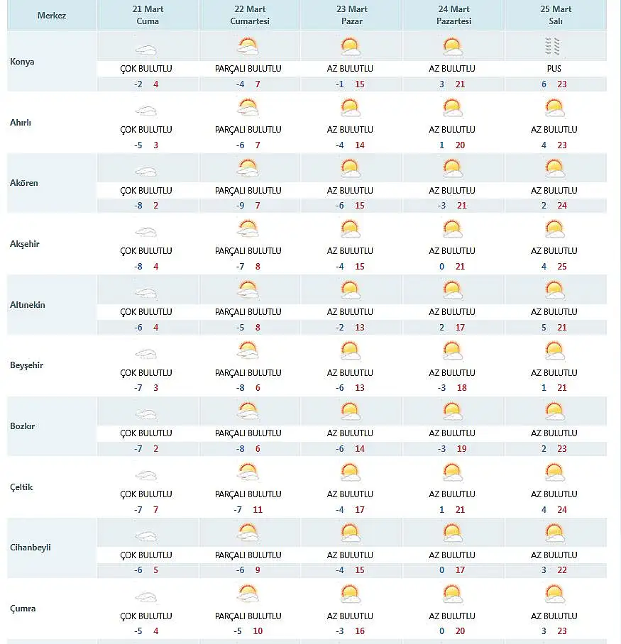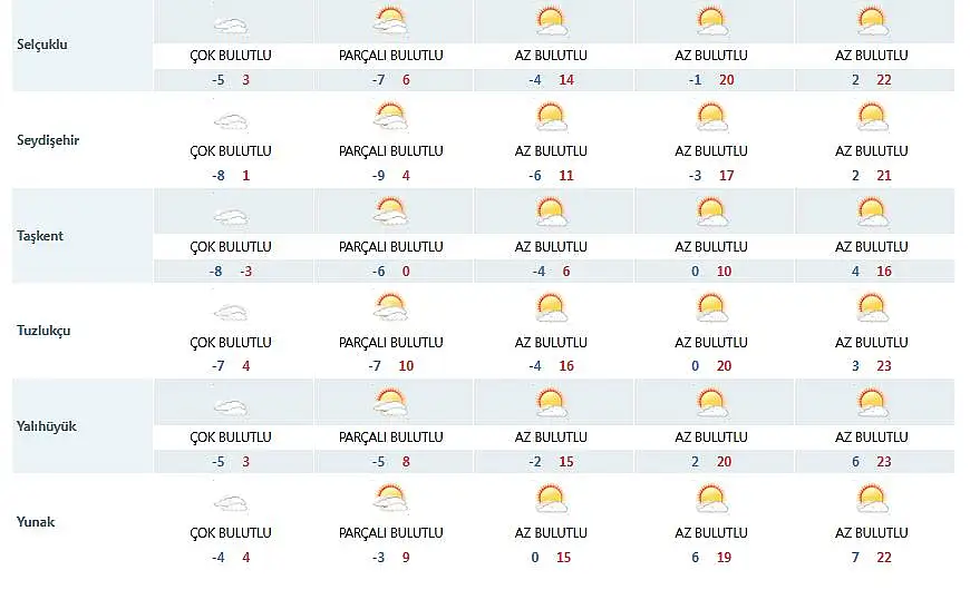 KONYA’NIN 5 GÜNLÜK HAVA DURUMU TAHMİNİ: