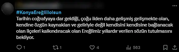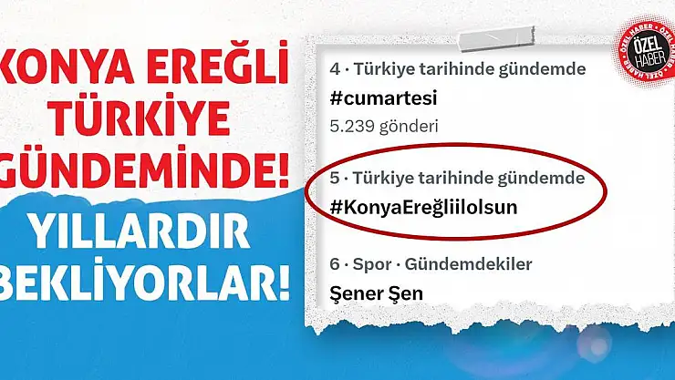 Konya’nın il olmayı bekleyen ilçesi Ereğli’ye sosyal medyada destek yağdı. “Konya Ereğli İl Olsun” başlığı kısa sürede Türkiye gündemine yerleşti.
