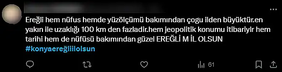 hashtagiyle yapılan binlerce paylaşımda Ereğli’nin il olması için destek yağdı.