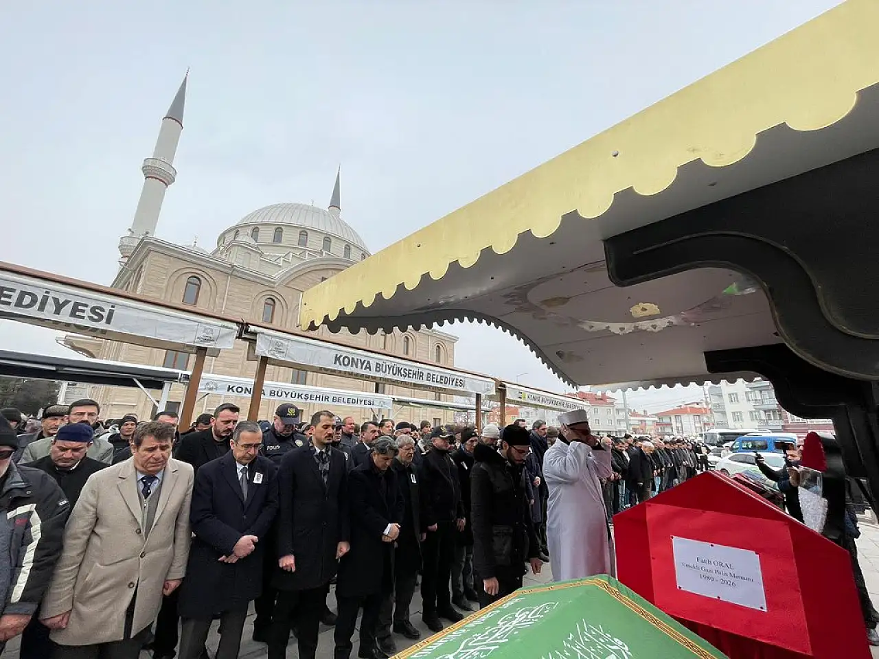 Görev başında şehit olan polis memuru Fatih Oral, binlerce kişinin katıldığı cenaze töreniyle memleketi Konya'da dualar ve gözyaşları eşliğinde toprağa verildi.